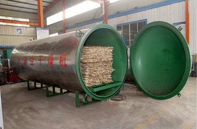 真空狀態(tài),主要利用真空狀態(tài)下水的沸點較低,蒸發(fā)速度加快,木材表面的含水率梯度增大,木材在干燥過程中,一方面表面水分向周圍空氣中蒸發(fā),另一方面內(nèi)部的水分不斷地向表面移動,所以在較低的溫度下加快了干燥速度,這樣就能保證木材的干燥質(zhì)量。而真空狀態(tài)是一種負(fù)壓狀態(tài),有一定吸水作用,與高頻的壓力梯度正好相似,也加速了木材芯部水分排出,此外,在低壓條件下,干燥介質(zhì)中的氧氣,因熱作用與氧化作用引起的物料變色少,基本上可以保持名貴木材的天然色澤。